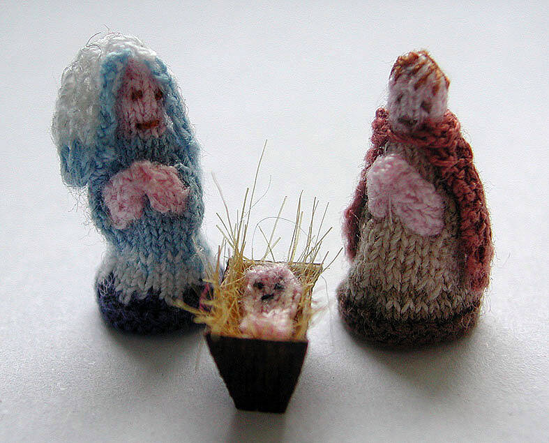 This was a challenge right up my alley "knit a nativity scene". I had planned to do that for so long. Once I had knitted Mary, 1.7 cm, it was not difficult to knit Joseph, the 3 kings and the shepherds afterwards.
